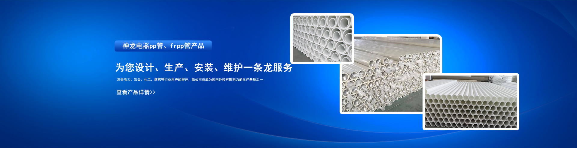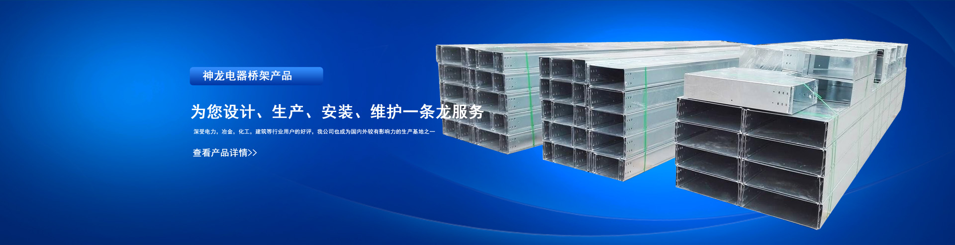 公司擁有進口設備三套,管材、橋架生產線八條,主營的各類電纜橋架、匯線橋架、防火橋架、地面線槽、開關柜、儀器儀表、管閥件、ф15-ф630口徑防腐塑料管材、管件等系列產品,深受電力,冶金,化工,建筑等行業用戶的好評,我公司也成為國內外較有影響力的生產基地之一。...……